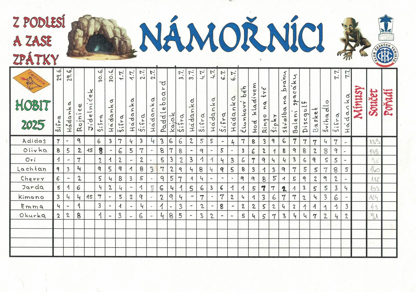 Táborové tabulky - bodování jednotlivců 0004